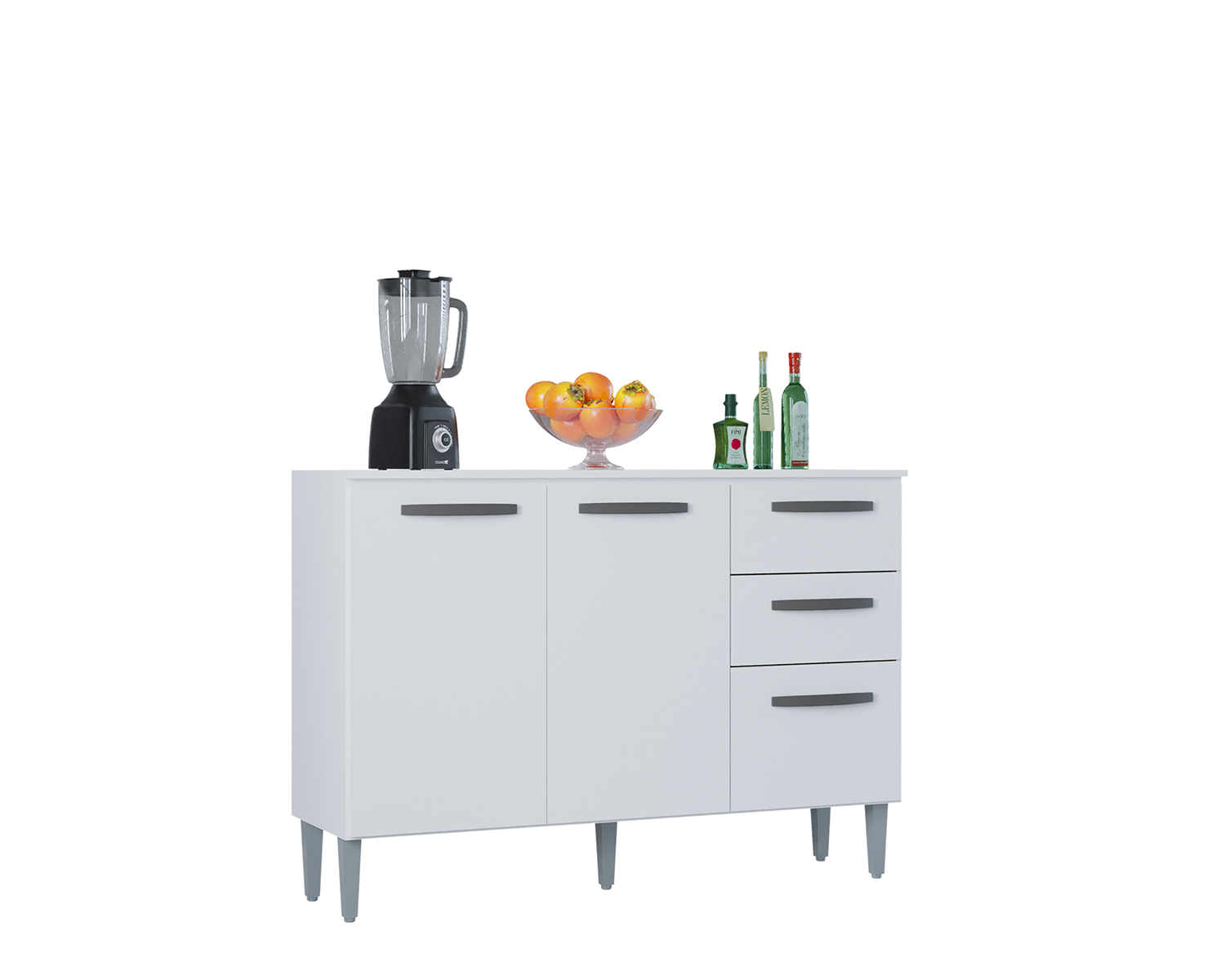 O Balcão Lavínia 3P2G com Tampo – Branco é a escolha certa para quem busca eficiência, organização e um toque de elegância na cozinha!