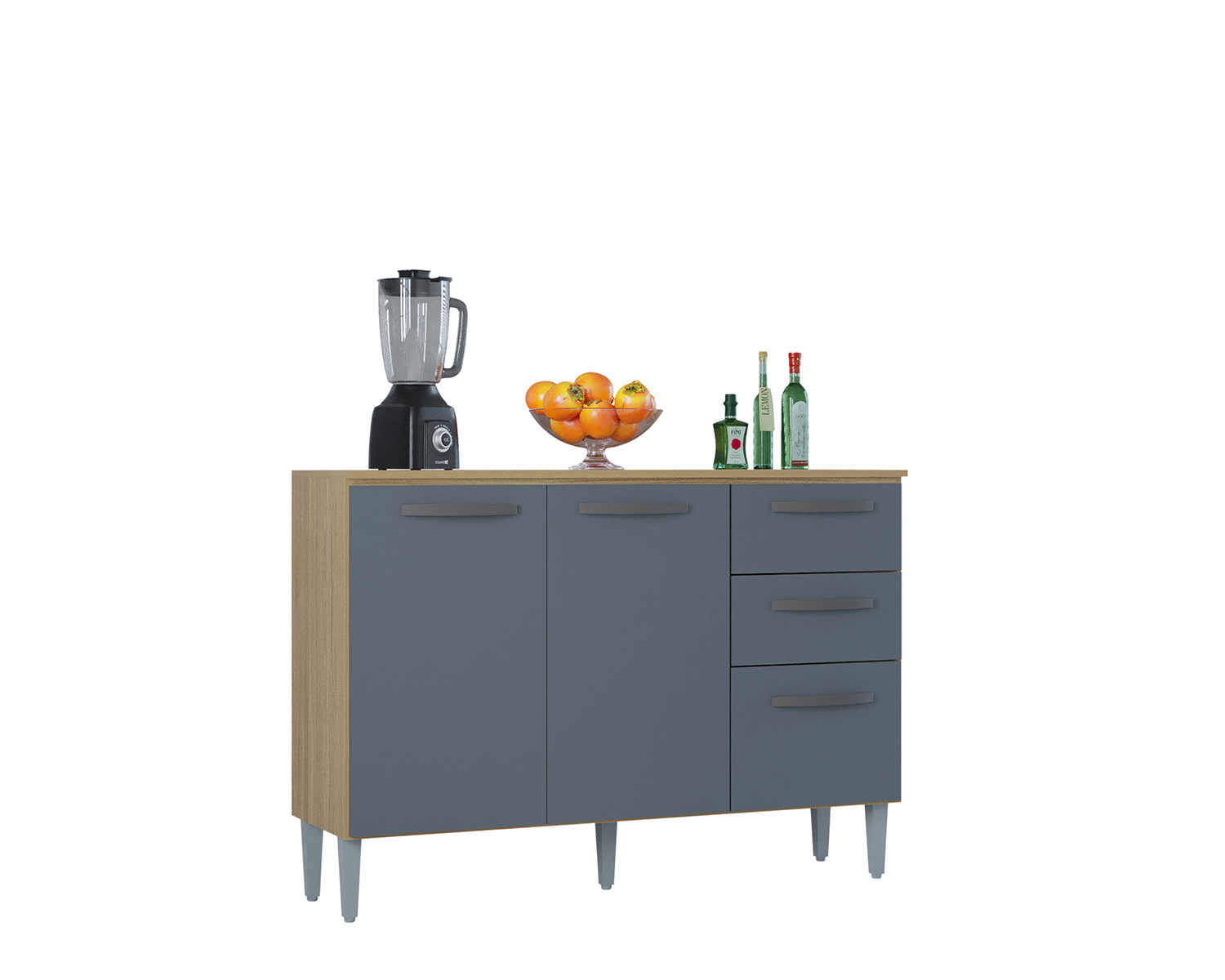 Ideal para complementar sua cozinha, o balcão oferece excelente espaço interno e um tampo resistente, que pode ser utilizado como apoio para preparo de alimentos ou acomodação de eletrodomésticos.