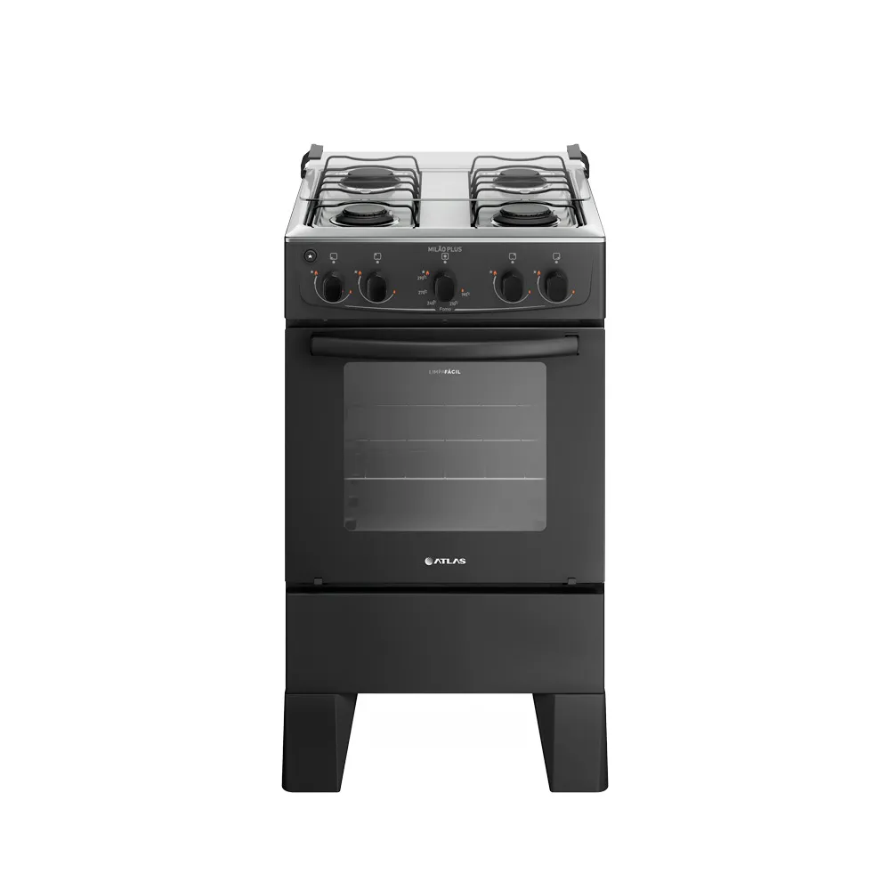 O Fogão Atlas Milão 4 bocas preto é a escolha certa para quem quer unir beleza, funcionalidade e eficiência em um único produto. Ideal para facilitar sua rotina com estilo e praticidade.