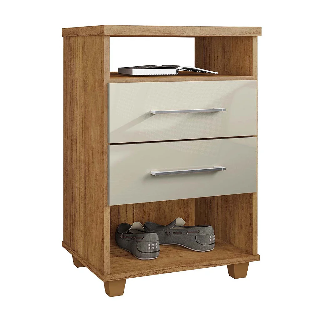 O móvel possui uma gaveta e uma prateleira inferior, ideais para organizar livros, controles, objetos pessoais ou pequenos eletrônicos, mantendo o ambiente sempre arrumado e funcional. Seu design compacto e resistente permite otimizar espaços sem abrir mão do estilo.