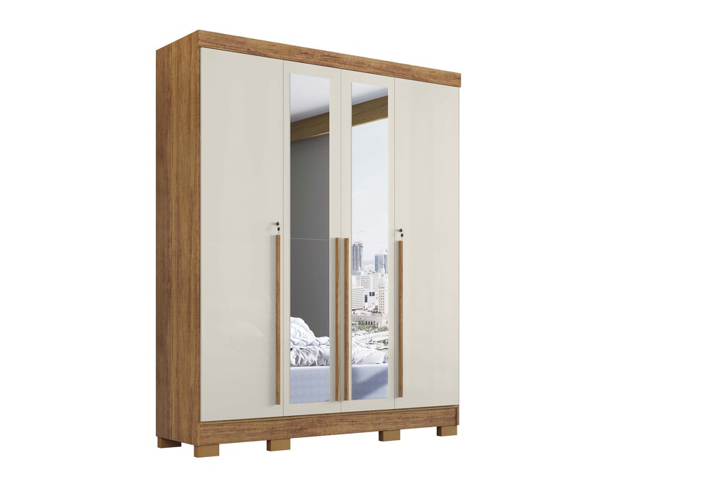 Ideal para quartos de casal, solteiro ou de hóspedes, o Roupeiro Domus 4 Portas com Espelho Cedro/Areia combina durabilidade, design contemporâneo e praticidade, tornando-se um móvel versátil e elegante para qualquer espaço.