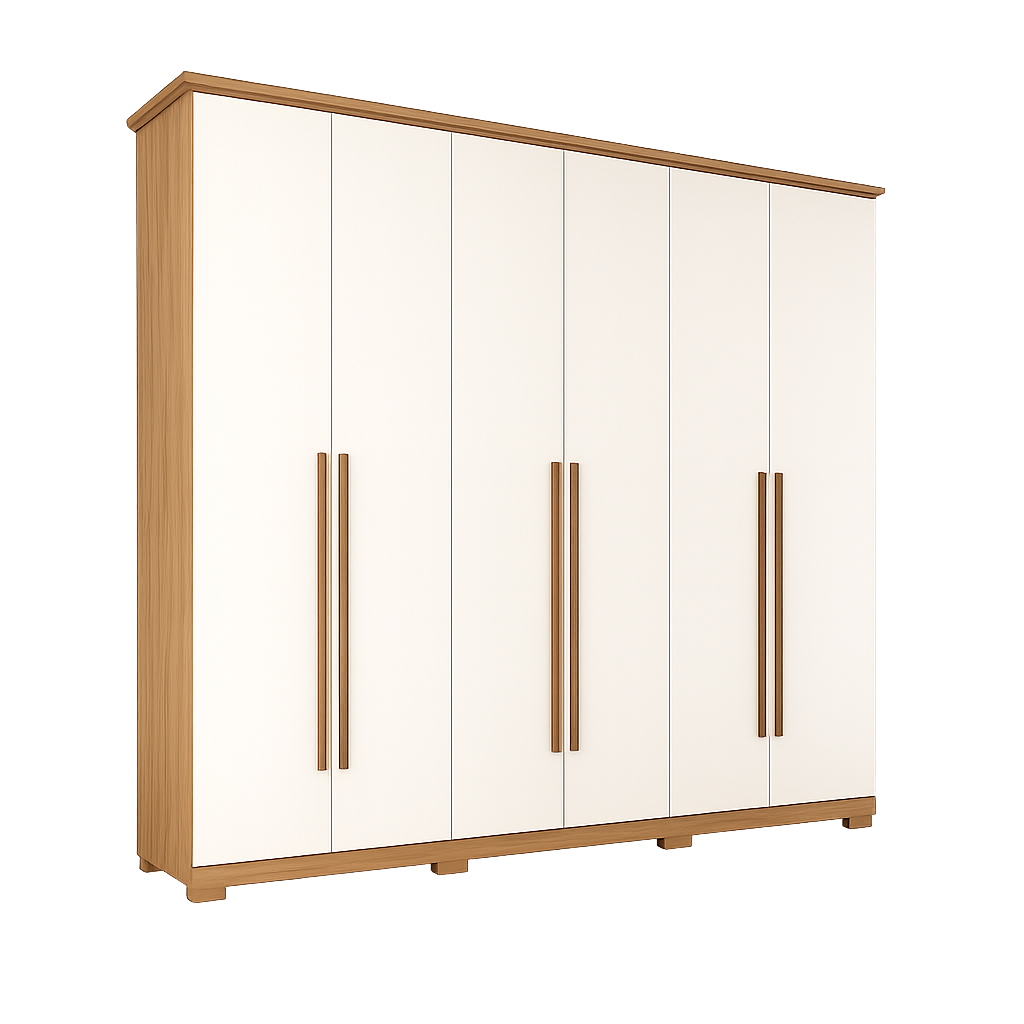 O Roupeiro Leblon 06 Portas é perfeito para quem busca amplo espaço interno, design moderno e organização completa para o quarto. Com acabamento elegante na combinação Nature com Off White, o móvel traz sofisticação e combina facilmente com diferentes estilos de decoração.