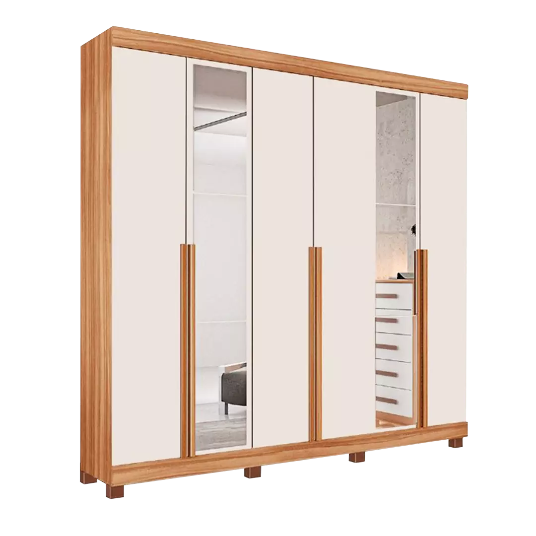O Roupeiro Milano 06 Portas com Espelho – Freijó / Off White é a escolha perfeita para quem busca amplitude, organização e sofisticação no quarto. Seu acabamento combina o tom amadeirado Freijó com o elegante Off White, criando um visual moderno e aconchegante que valoriza qualquer ambiente.
