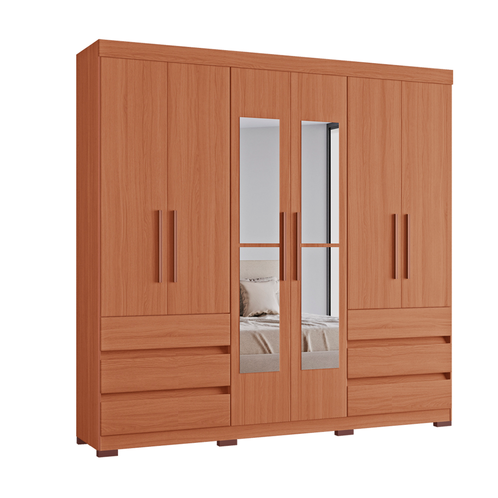 O Roupeiro Panamá 06 Portas com Espelho é a escolha ideal para quem busca amplo espaço interno, organização inteligente e um visual moderno para o quarto. Com design sofisticado e espelhos frontais que ampliam o ambiente, ele combina perfeitamente funcionalidade e elegância, sendo perfeito para quartos de casal.