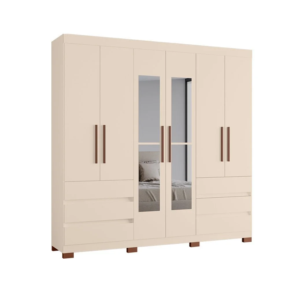 Com amplo espaço interno e excelente divisão, ele permite organizar roupas, acessórios e calçados com praticidade. Os espelhos frontais agregam funcionalidade e ajudam a ampliar visualmente o ambiente, tornando o quarto ainda mais agradável.