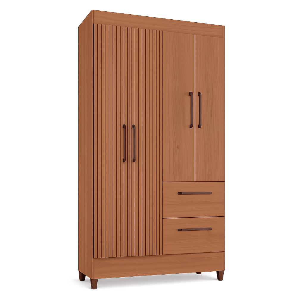 O Roupeiro Star 04 Portas é a escolha perfeita para quem busca organização, praticidade e um design moderno para o quarto. Com acabamento na cor Freijó e detalhe ripado nas portas, o móvel traz um visual elegante que valoriza o ambiente e combina facilmente com diferentes estilos de decoração.