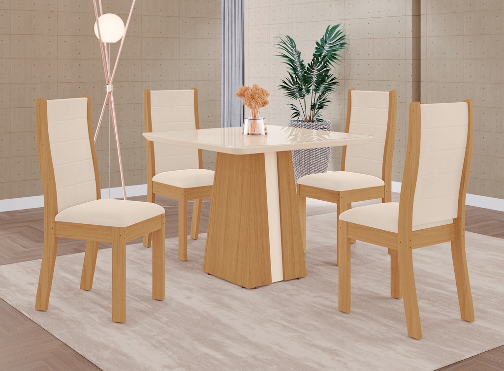 SALA DE JANTAR NAOMI 0.90 + 04 CADEIRAS BEATRIZ FREIJO / OFF WHITE / OFF WHITE PREMIER